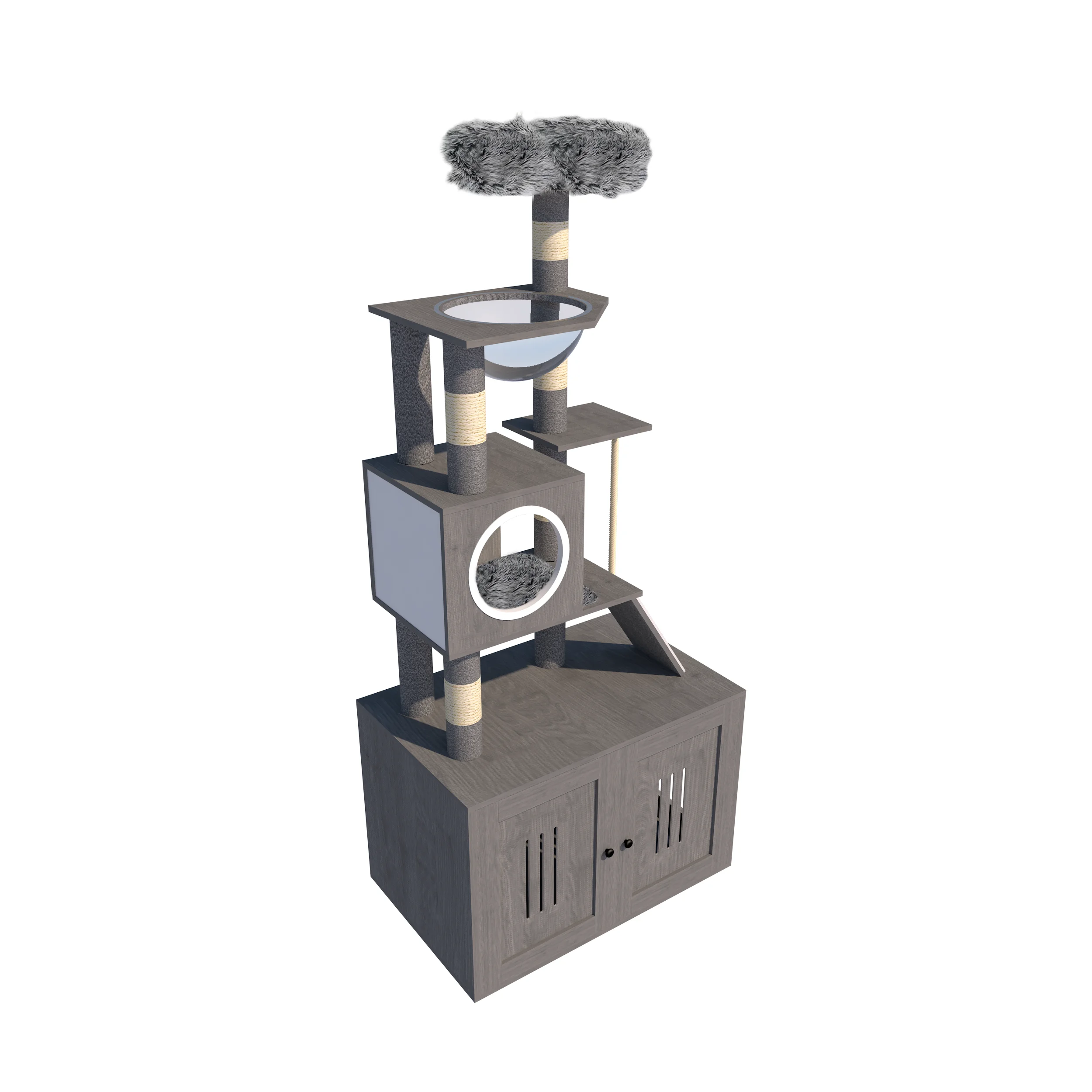 1 Particleboard + Paper Tube + Sisal + Plush Cat Climbing Frame Cat Litter Cabinet Combination