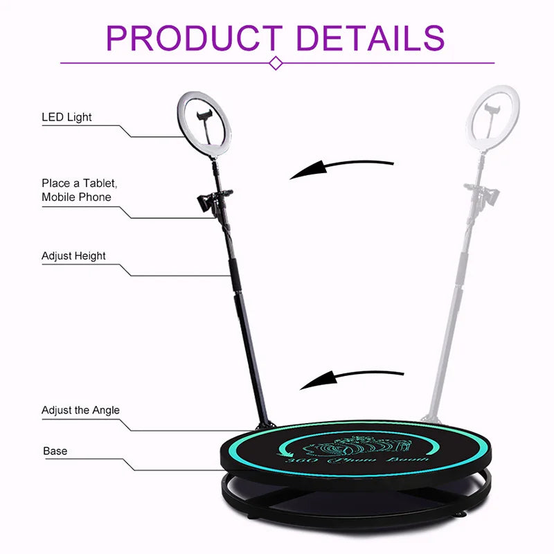 360 Photo Booth insta 360 Machine Camera APP Lights For Parties With Software Logo Customization Automatic 360 Spin Camera Booth