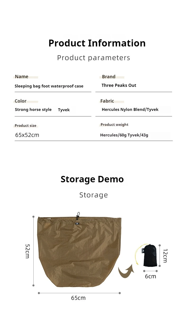 3F UL GEAR Sleeping Bag Foot Ultralight Dyneema Nylon Portable Waterproof Bag Camping Sleeping Bag Accessories Tear Resistant
