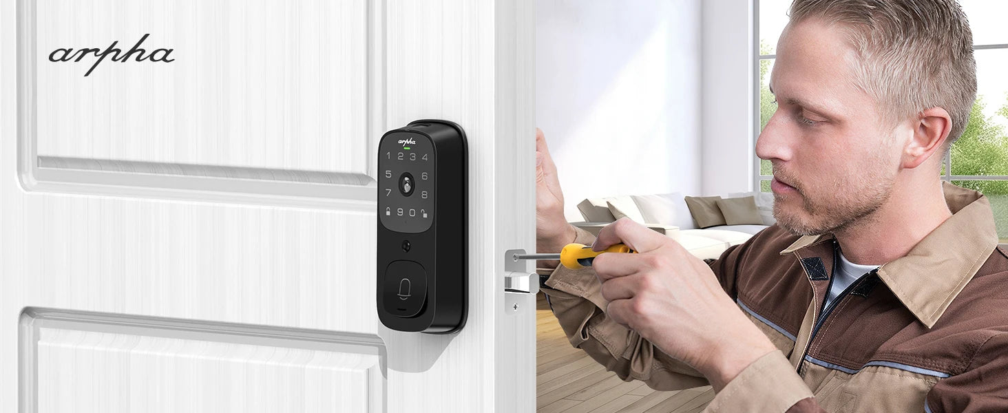 Arpha AL501 video smart lock 2024 new model support WiFi door lock+2K HD camera+doorbell. Keyless entry door lock with camera supports 4:3 aspect ratio image. User could view front door package situation completly by ARPHA App.