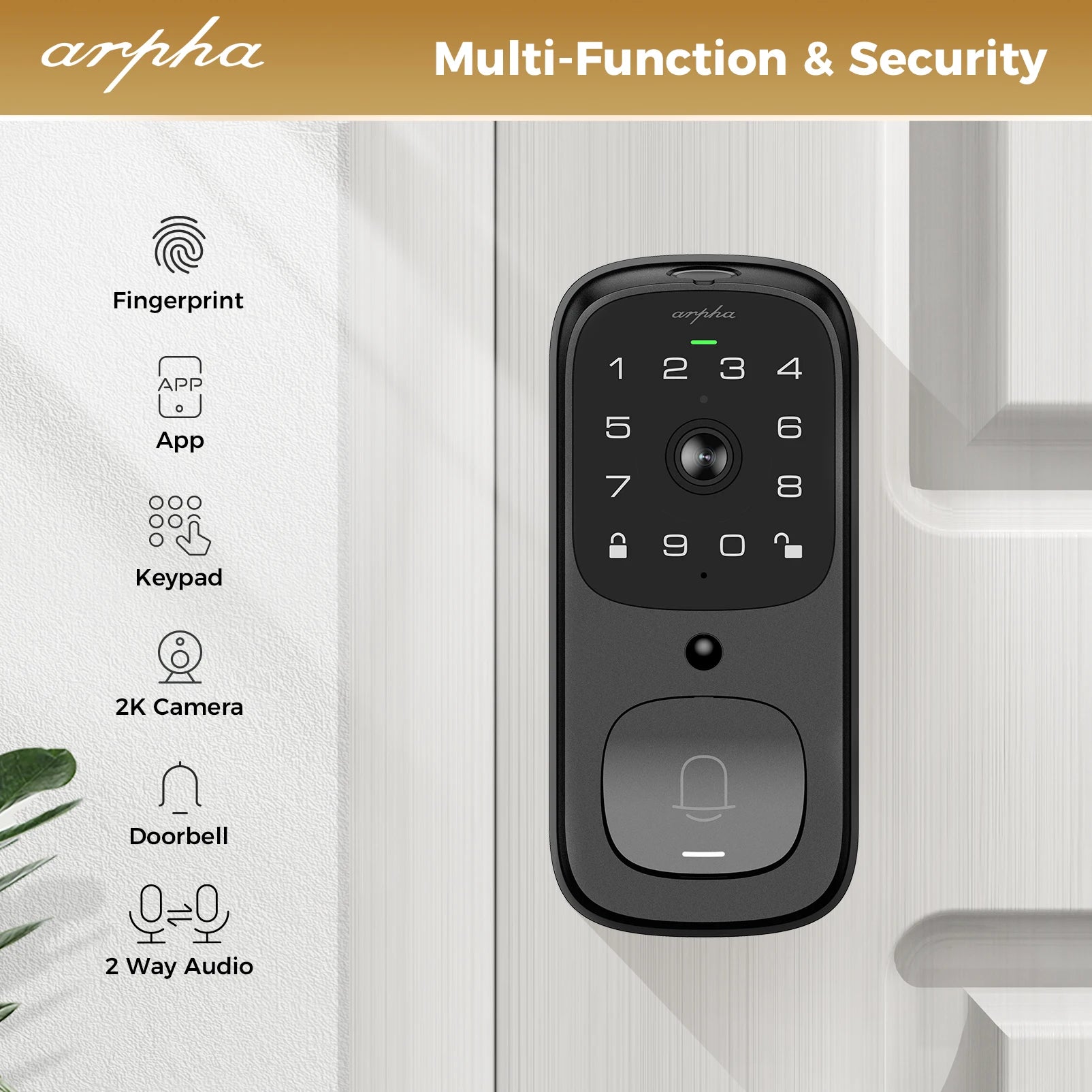 Arpha Smart Door Lock AL501 6 in 1 WiFi Smart Door Lock with Video Doorbell & Fingerprint 32GB Keyless Entry Digital Keypad
