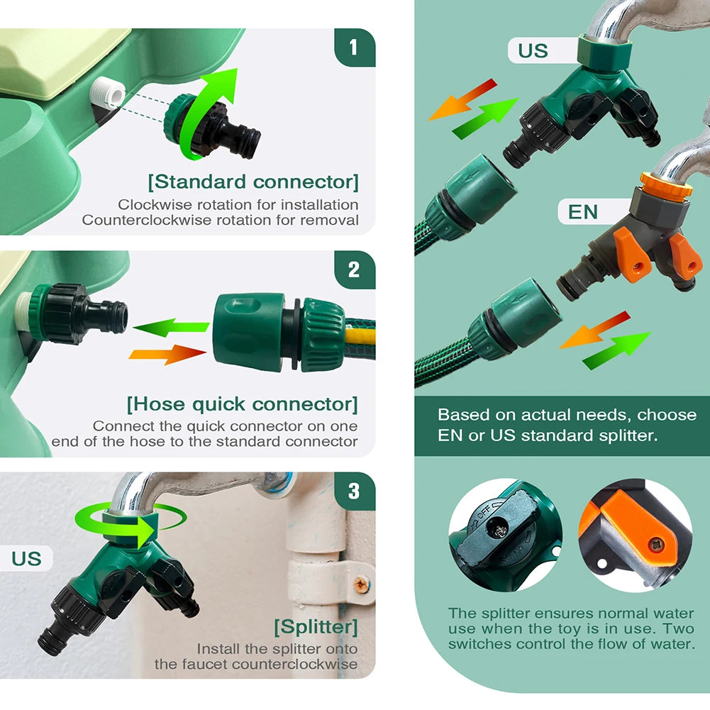 Features: 1.Fun and Refreshing Summer Game: The dog water fountain is for large dogs, providing a fantastic way to keep your furry friend cool and hydrated. With an easy-to-use step on sprinkler activated by paws, dogs can enjoy hours of fun while staying refreshed. This innovative dog playing water toy creates a splashing good time, making it one of the season's top outdoor pet water toys. Say goodbye to constantly refilling water bowls with this limitless drinking solution! 2.Easy Installation and Adjustable Spray: This dog playing water toy comes equipped with a hose and quick-connect accessories, allowing you to set up in minutes. Simply attach the hose to an outdoor water source, and the pet sprinkler is ready for use! The red switch lets you adjust the spray speed and direction of four nozzles, creating a customizable play experience for your pets. A versatile addition to any backyard. 3.Safe, Sturdy, and Eco-friendly: Made from premium plastic materials, this step on sprinkler is designed specifically for dogs. Free from BPA, PVC, and harmful chemicals. Its sturdy design ensures even the most playful pups won't damage the device. Whether used as an outdoor dog fountain or a dog fountain bowl, it is built to last through rough play of larger breeds. 4.Suitable for All Dog Sizes: for any breed, particularly large dogs, this dog water dispenser toy features adjustable spray and a pedal design that activates easily, ideal for training dogs of all sizes to help themselves to fresh water. No more dirty bowls, just pure, refreshing water! Your pup will love this pet water toy, and you'll love its easy setup and use. 5.Summer Water Play Solution: The pet water toy comes with a splitter, hose, and connectors for seamless installation. More than just a fountain for large dogs, it's a complete hydration and play solution. Whether your dog is playing outside or staying cool during the summer heat, this outdoor dog toy collection is a must-have addition. Specification: Origin: Mainland China Material: Plastic Packing Size: 437.00x265.00x110.00mm/17.2x10.43x4.33inch Note: