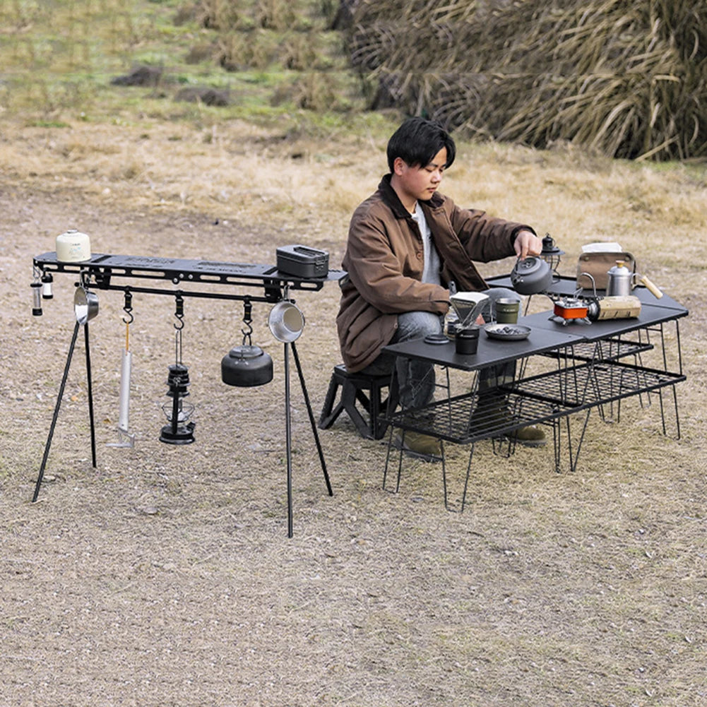 Folding Camping Hanging Rack Shelf Top Plate With Hook Triangle Storage Hanger Picnic Camping Cookware Pot Pan Hanging Rack