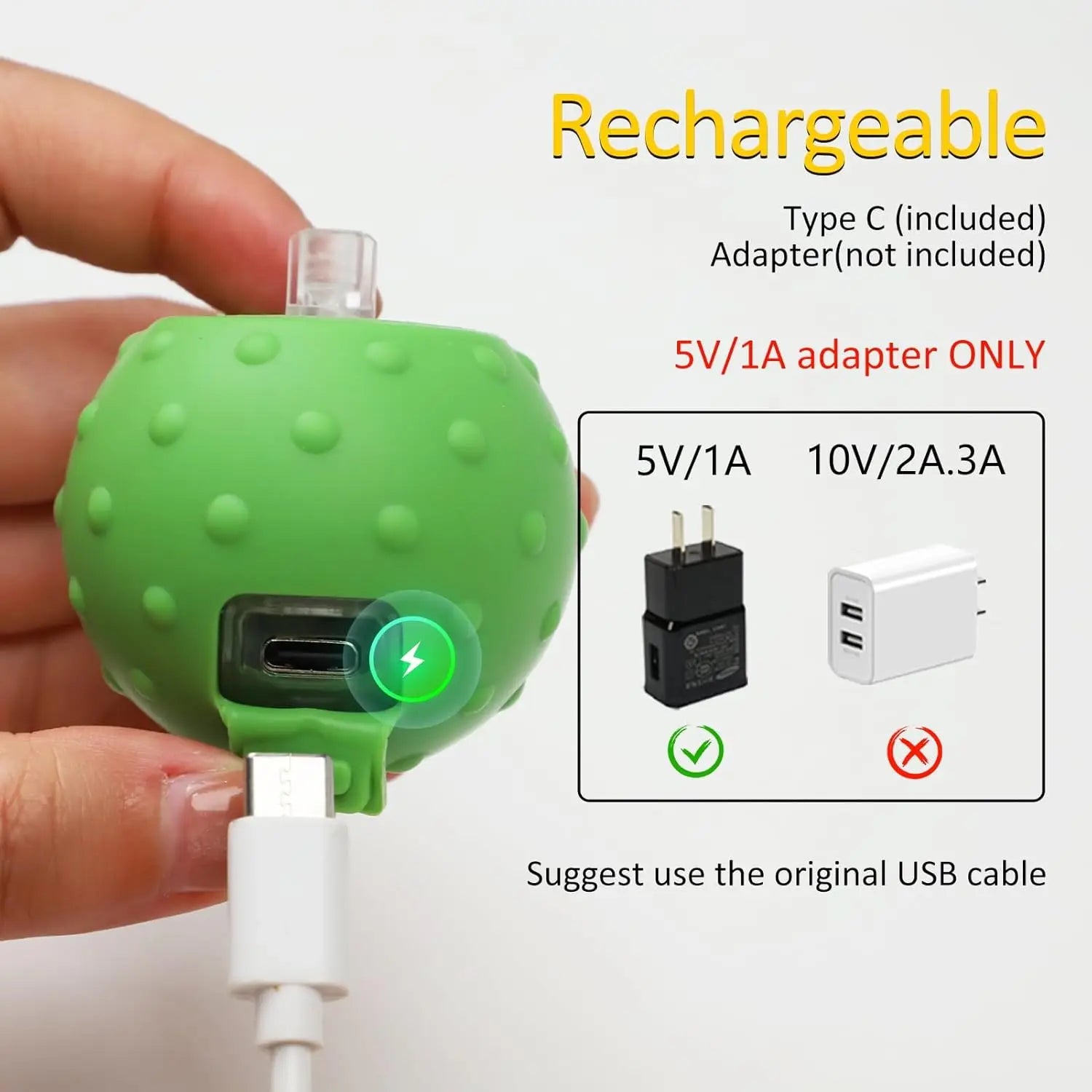 USB Rechargeable Stimulating Toys for Indoor Cats: Simple charge the ball toy via the Type-C cable, no need to changing battery often. Suggest use the 5V/1A adapter and the original packaged USB cable.Packaged included: Cat ball*1,replacement ropes*2,USB cable*1,user manual*1