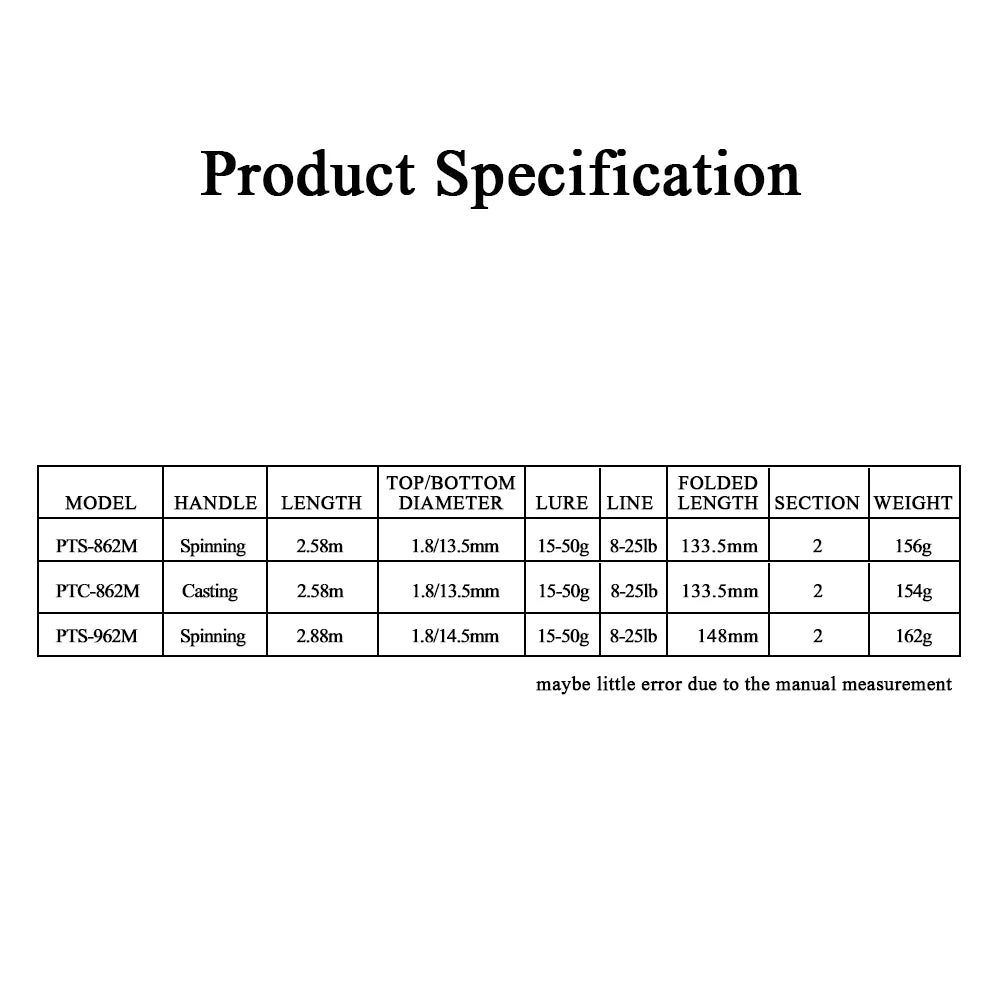 PTC862M , Casting, 2.58m,15-50g lure, 2 sections, Medium Fast Action