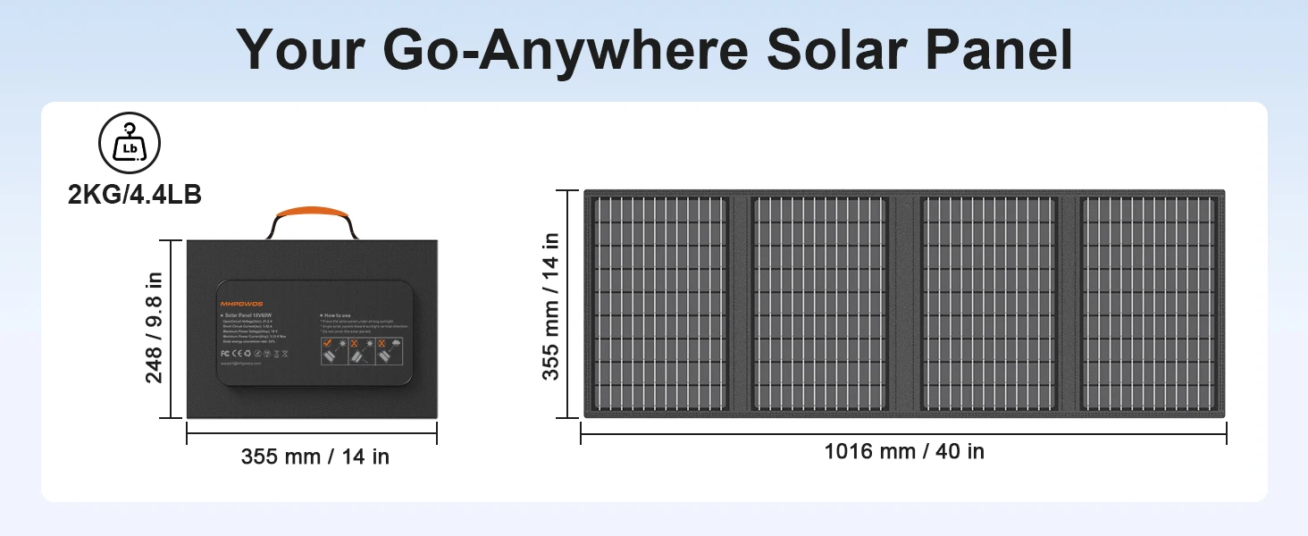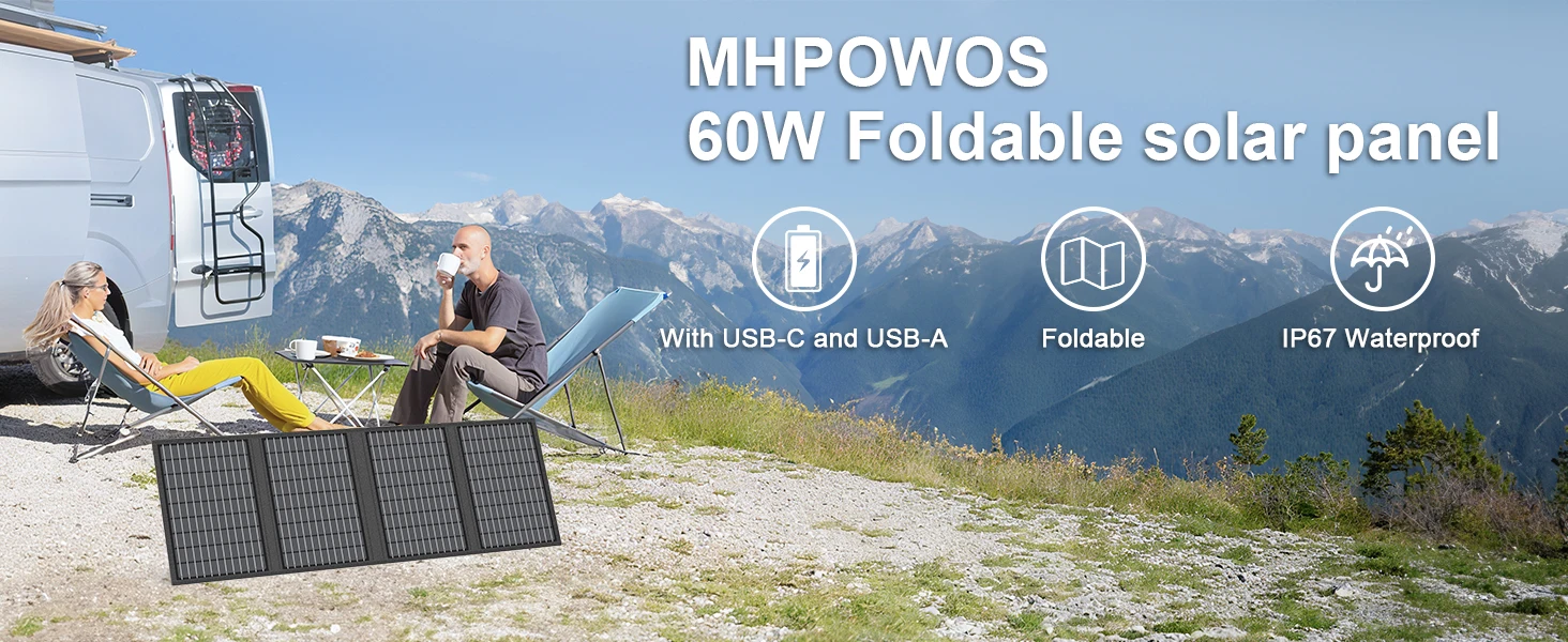 MHPOWOS Solar Battery Charger for Powerbank, 45W / 60W Foldable Portable Solar Panel with USB C, DC Output for Camping Phone