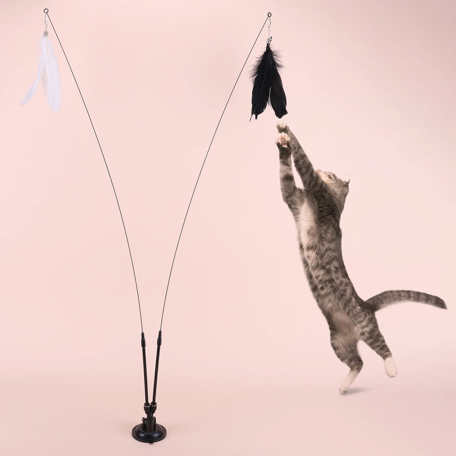Pet Cat Toy Set Suction Cup Toy Set Detachable Teaser Stick Set Interactive Cat Toy for Cat Training Playing Accessories