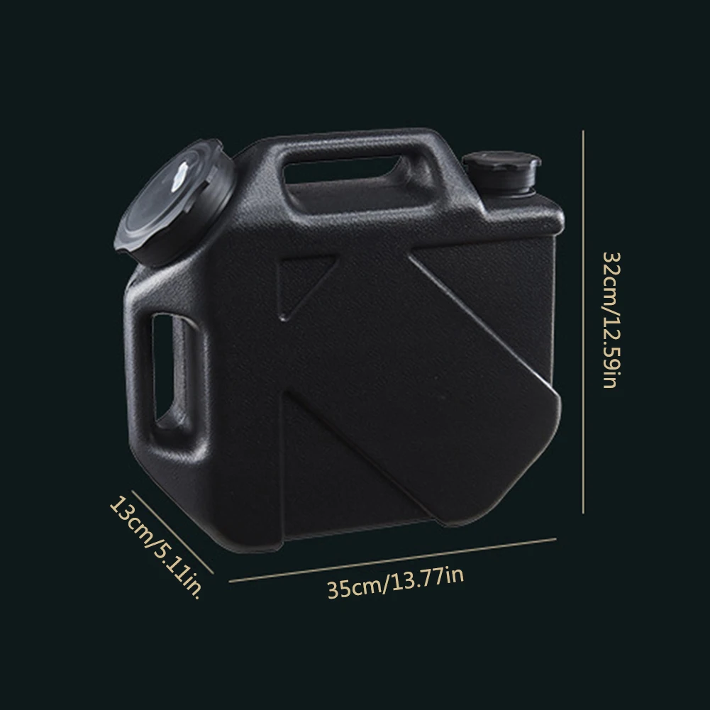 10L Water Carrier Large Capacity Portable Camping Bucket Water Storage with Detachable Faucet No Leakage Travel Camping Supplies Feature: 1. Food-Grade Material: Made of high-quality food-grade PE material, this water storage bucket is clean, odorless, and free from impurities, ensuring that your water supply is safe to use. 2. Detachable Water Faucet: The detachable water faucet can be replaced with a sealed cover to improve the overall sealing performance. The faucet features a large water flow and a knob that can be used to control the water output. 3. Large Bucket Mouth Design: The 10cm diameter opening makes it easy to clean and fill the bucket with water. 4. and Sturdy: The thickened bucket wall is slip-resistant, scratch-resistant, anti-collision, and corrosion-resistant, ensuring that the bucket is and long-lasting. 5. Convenient: The water storage bucket comes with an extended faucet hose that allows you to direct the water flow as needed. It also has a storage slot on the side for storing the extended hose, making it easy to access when needed. Specification: Material: Food grade environmentally friendly PE Color: Black Size: 35 * 32 * 13cm/13.77 * 12.59 * 5.11inch Capacity: 10L Large bucket mouth: diameter 10cm Small bucket mouth: diameter 5cm Note: