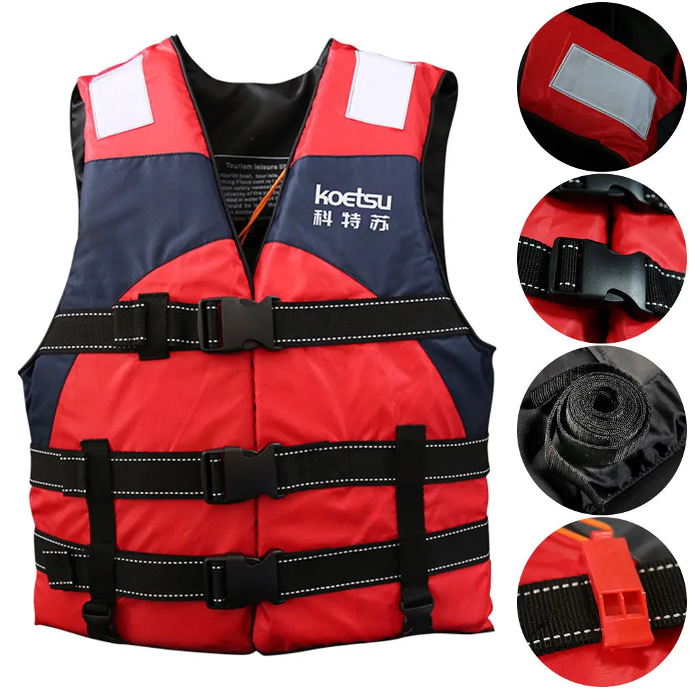 Features: 1.Reflective Strips: Designed with two reflective strips on the shoulders, this portable swim jacket ensures high visibility at night under any light source, enhancing safety during water activities. 2.Life-saving Whistle: Comes equipped with a small whistle that integrates seamlessly with the swimming life vest, offering an additional chance for distress signals without hindering the vest's functionality. 3.Placement Crotch Strap: The floating life vest features an added crotch strap to prevent slipping off in emergencies, providing better protection. Thoughtfully designed inner pockets allow storage of the strap or other items. 4.Adjustable Safety Buckle: Made from sturdy POM material, this buoyancy life vest includes a widened, thickened adjustable buckle that can be tailored for different body sizes, ensuring a secure fit. 5.Safe and Versatile: Supporting weights up to 90KG, this water sports safety vest is suitable for various water activities like jet skiing, rowing, surfing, sailing, windsurfing, fishing, and ocean observation within the weight limit. Specification: Origin: Mainland China Color: Red Black Fabric: Waterproof Oxford Cloth Filling: Thickened Buoyancy Pearl Cotton Board Accessories: Reflective Tape, Webbing, POM, ABS, Etc. Size: Length 54cm/21.26in*Width 50cm/19.69in (One Size, For People Weighing Less Than 90kg) Weight: 400g Buoyancy: Maximum Load 90kg Applicable People: (Weight Less Than 90kg) General Scope Of Application: Water Entertainment Projects Such As Jet Skiing, Boating, Water Surfing, Sailing, Windsurfing, Fishing, Sea Watching, Etc.