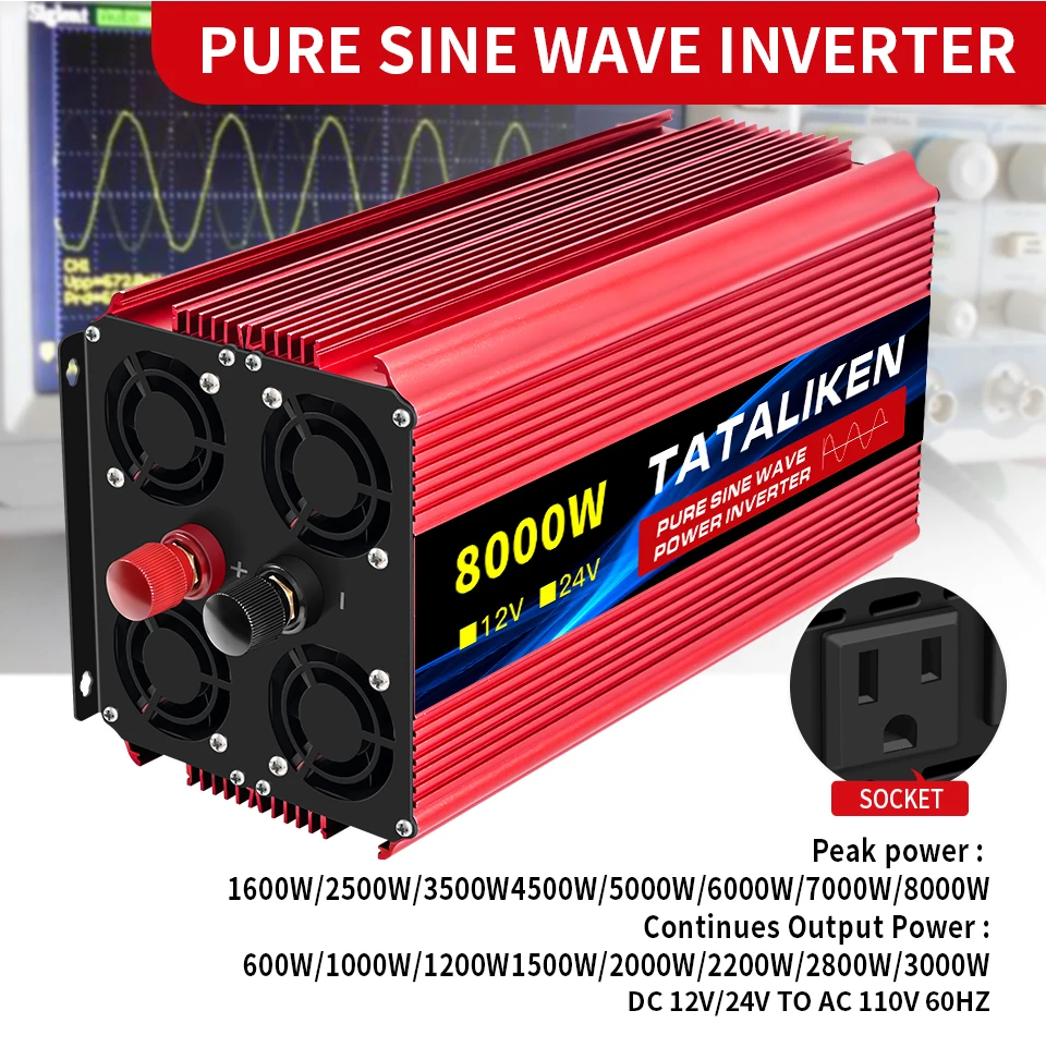 Pure Sine Wave Inverter DC12V/24V To AC110V 60HZ 1600W 2500W 3500W 4500W 5000W 6000W 7000W 8000W Power Voltage Converte
