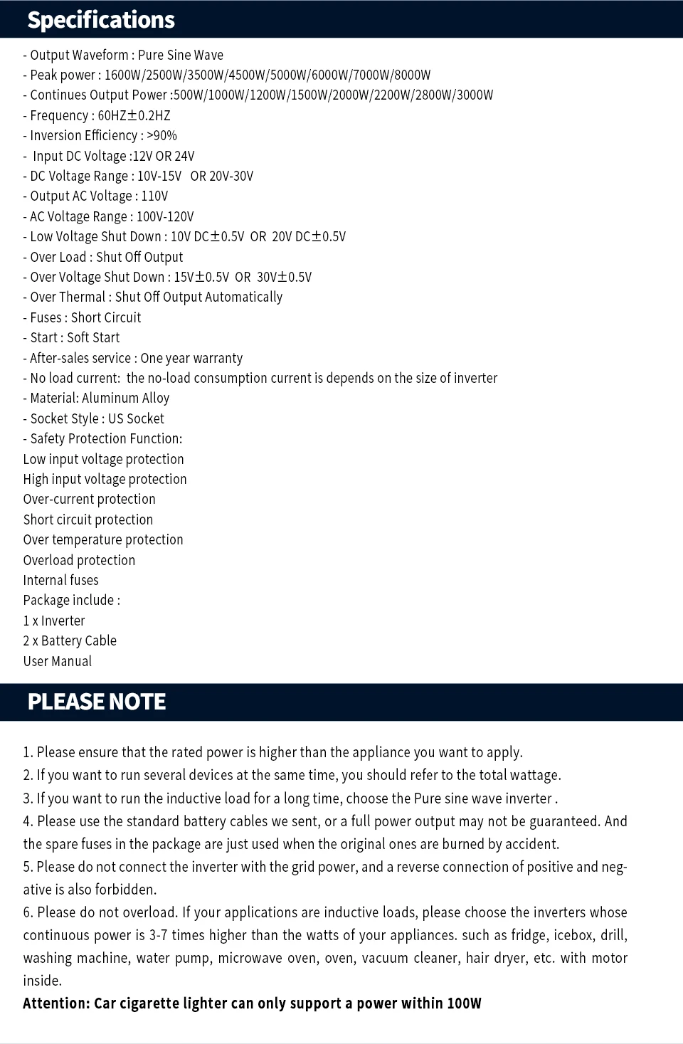 Output Power: 1600W 2500W 3500W 4500W 5000W 6000W