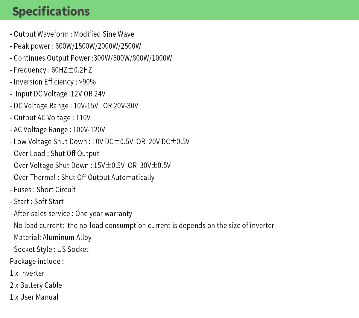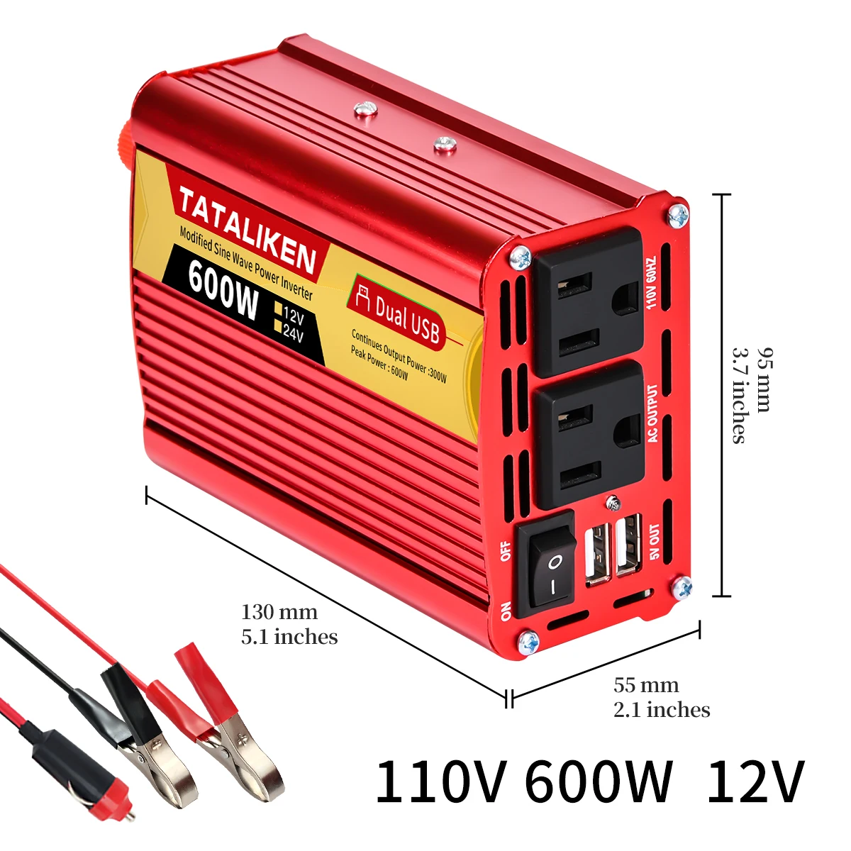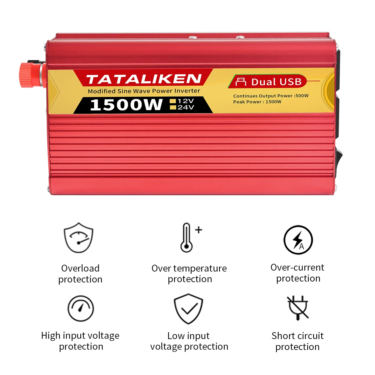 US Socket Inverters 12V/24V 60HZ 110V 600W 1500W 2000W 2500W, Portable Vehicle-Mounted Household Frequency Converter