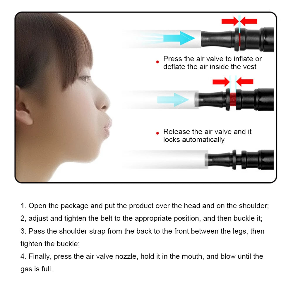 5.Compact Design: This inflatable buoyancy vest is lightweight and easy to carry, making it ideal for travel and outdoor adventures.